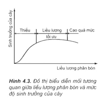 Dựa vào đồ thị trên hình 4.3 hãy rút ra nhận xét về liều lượng phân bón hợp lí để đảm bảo cho cây sinh trưởng tốt nhất mà không gây ô nhiễm môi trường.