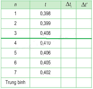 Dùng một đồng hồ đo thời gian có độ chia nhỏ nhất 0.001 s để đo n lần thời gian rơi tự do của một vật bắt đầu từ điểm A (vA = 0) đến điểm B, kết quả cho trong Bảng 7.1.