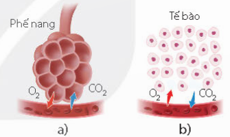 Trao đổi khí ở phổi (a) và các tế bào trong cơ thể (b)