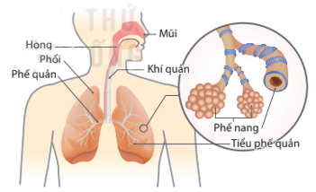 Phế quản và tiểu phế quản dẫn khí vào phổi rồi đến nang.