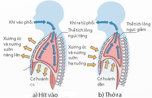 Sự thông khí ở phổi được diễn ra nhờ cử động hô hấp (hít vào, thở ra). Khi hít vào hay thở ra, hoạt động của cơ, xương thay đổi sẽ làm tăng hoặc giảm thể tích lồng ngực.