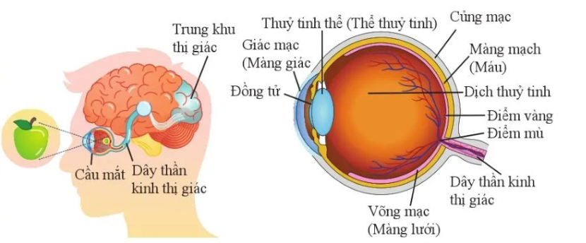 - Thị giác có chức năng quan sát, thu nhận hình ảnh, màu sắc của sự vật và hiện tượng, giúp não biết và xử lí thông tin.