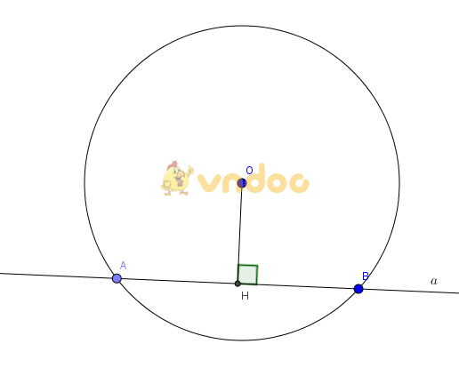 Cho đường thẳng a và (O;R). Đặt OH=d là khoảng cách từ O đến đường thẳng a. Khi đó: