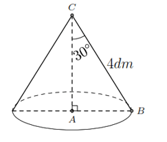 Bài 2. Khi quay tam giác ABC vuông ở A một vòng quanh cạnh góc vuông AC cố định, ta được một hình nón. Cho biết BC = 4 dm,