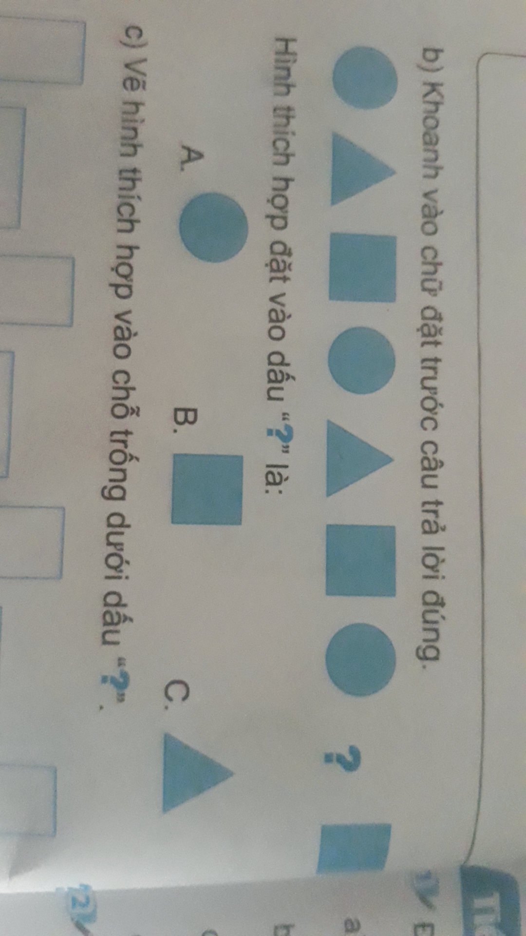 Hình thích hợp điền vào dấu hỏi chấm là: