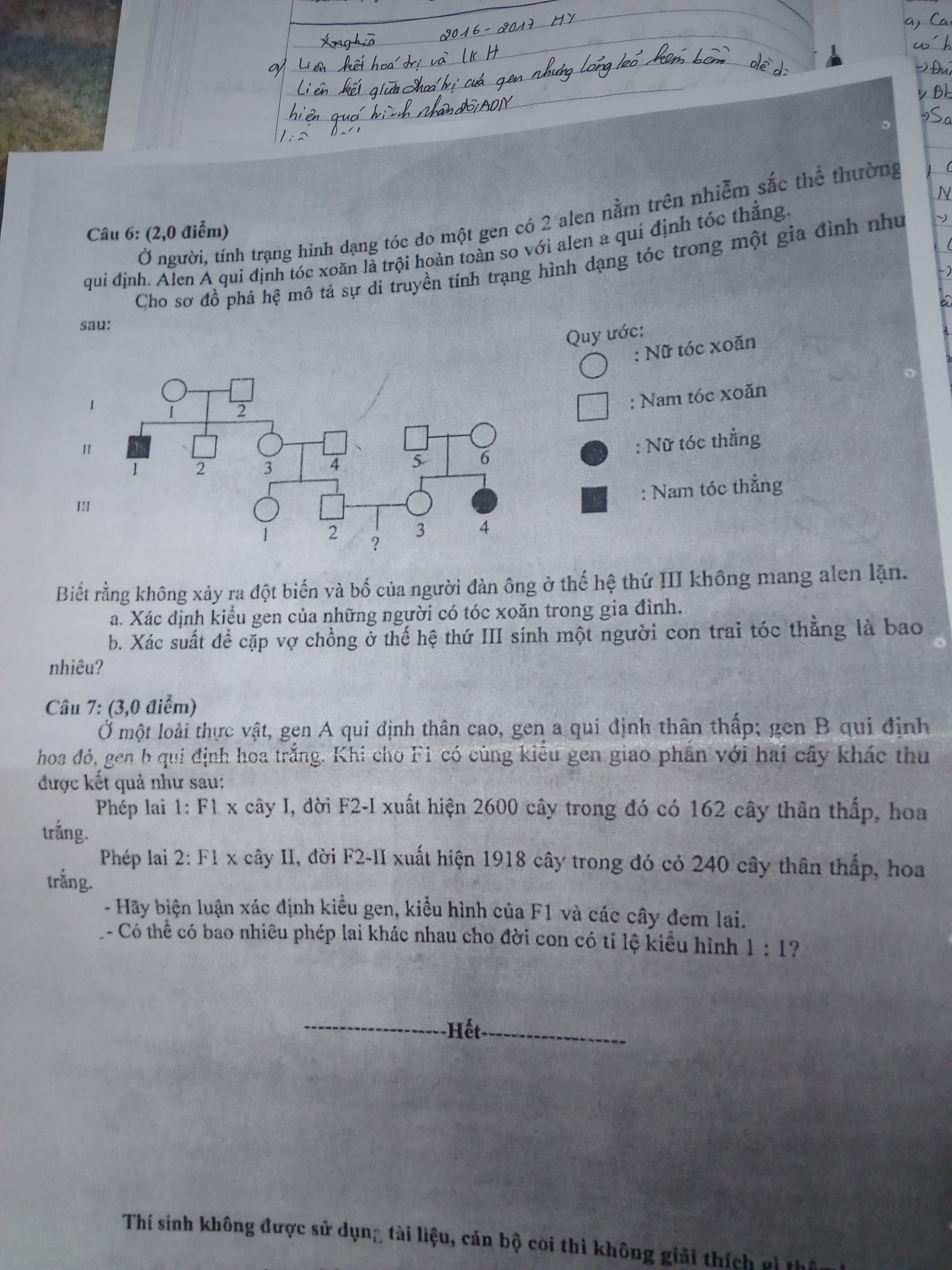 Ở người, tính trạng hình dạng tóc do một gen có 2 alen nằm trên NST thường quy định.