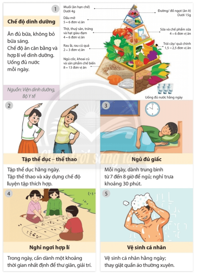 Em hãy thực hiện chế độ sinh hoạt hằng ngày để đảm bảo sức khoẻ. Ghi chép lại sự thay đổi tích cực của bản thân.