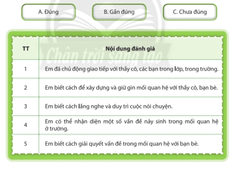 Hoạt động 2 trang 31 HĐTN lớp 6. Với mỗi nội dung đánh giá, hãy xác định mức độ phù hợp nhất.
