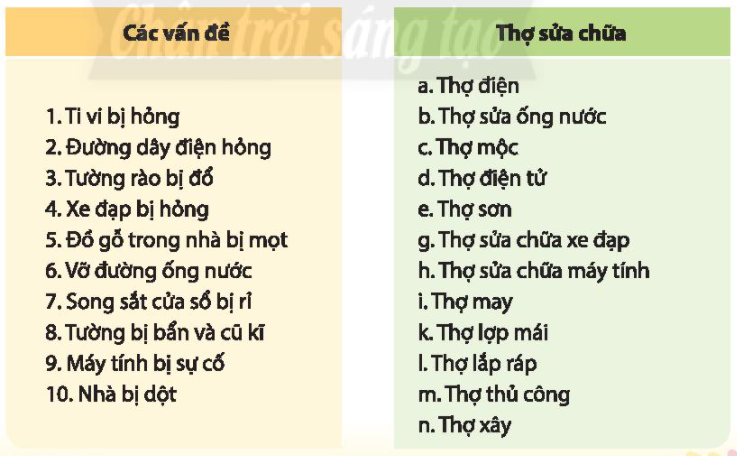 Hãy tìm thợ sửa chữa để giải quyết các vấn đề phát sinh trong gia đình em.