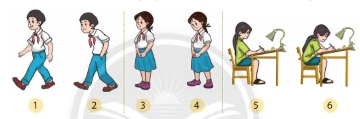 Quan sát các tư thế đi, đứng, ngồi dưới đây và xác định tư thế đúng.