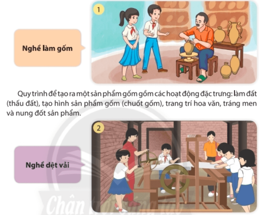 Hoạt động 1 trang 60 HĐTN lớp 6. Quan sát tranh và đọc thông tin về hoạt động đặc trưng của hai làng nghề truyền thông dưới đây: