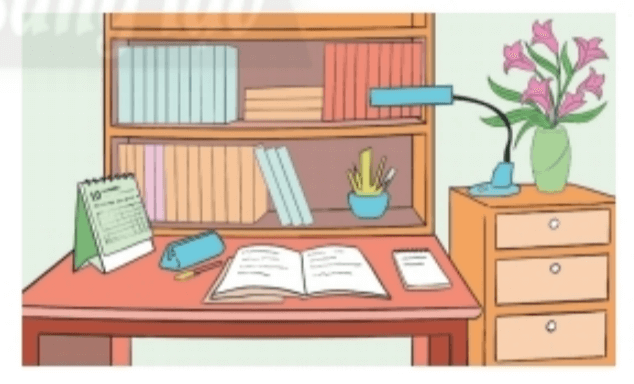 Học sinh có thể sắp xếp bằng cách: bút cất gọn vào hộp hút. Sách giáo khoa và vở bài tập để một giá riêng. Truyện tranh và sách để một ngăn riêng.