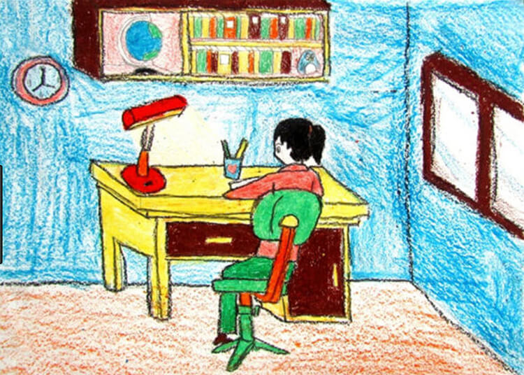Học sinh vẽ hoặc chụp lại góc học tập nơi sinh hoạt của em và chia sẻ với bạn bè, thầy cô.