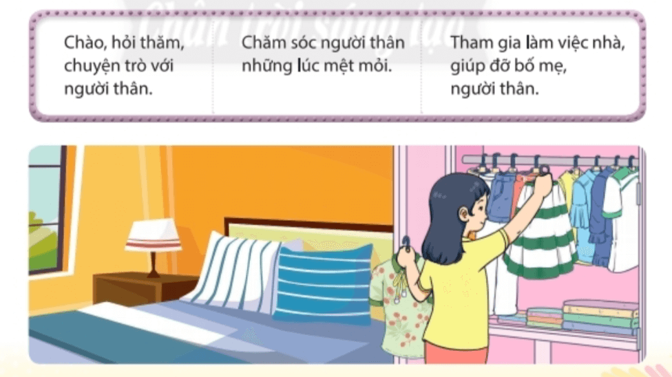 - Chào hỏi thăm, chuyện trò với người thân.