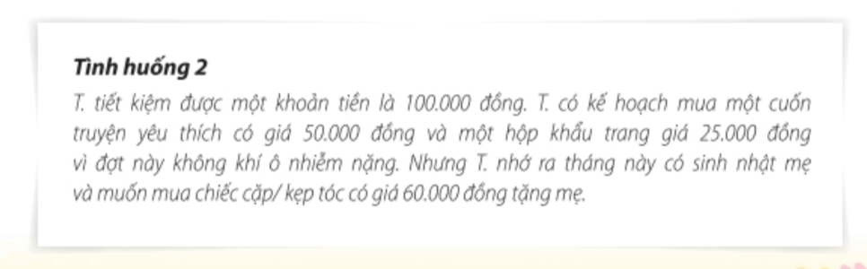 Hoạt động 2 trang 46 HĐTN lớp 6. Chia sẻ một số tình huống mà em đã ưu tiên chi cho người khác khi cần thiết.