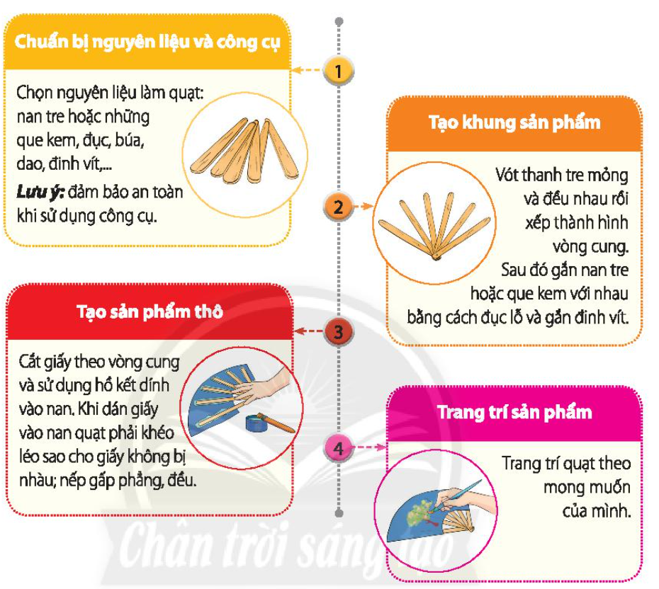 Em đọc kĩ hướng dẫn và làm quạt giấy