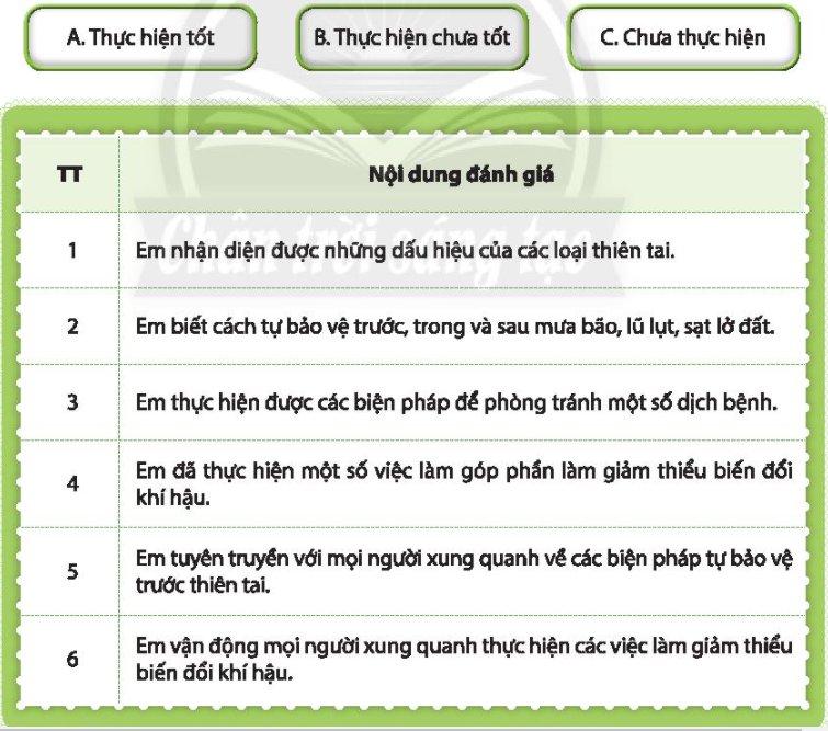 Hoạt động trải nghiệm 6 Nhiệm vụ 9: Tự đánh giá trang 74