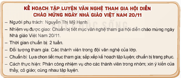 Câu 3 (trang 19 Hoạt động trải nghiệm 9): Chia sẻ kế hoạch đã xây dựng