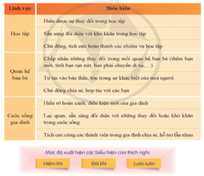Xác định khả năng thích nghi của bản thân dựa trên mức độ xuất hiện các biểu hiện: