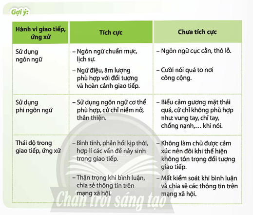 - Bình tĩnh, phản hồi kịp thời, hợp lí các vấn đề nảy sinh trong giao tiếp. - Thận trọng khi bình luận, chia sẻ thông tin trên mạng xã hội. |
