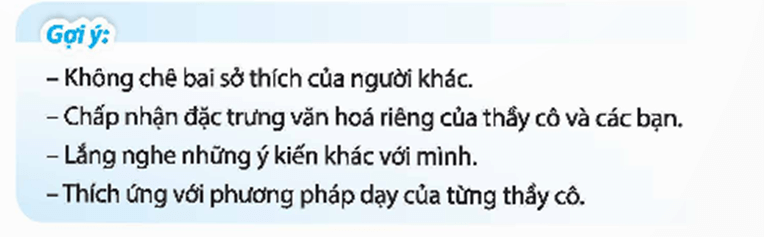 Hoạt động trải nghiệm 9 Nhiệm vụ 2. Tôn trọng sự khác biệt của thầy cô và các bạn
