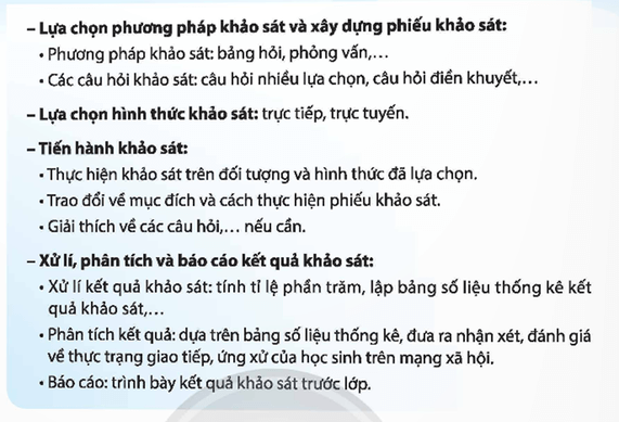 * Cách thực hiện đề tài khảo sát thực trạng giao tiếp của học sinh trên mạng xã hội: