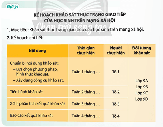 Hoạt động trải nghiệm 9 Nhiệm vụ 3: Lập kế hoạch thực hiện đề tài khảo sát thực trạng giao tiếp của học sinh trên mạng xã hội