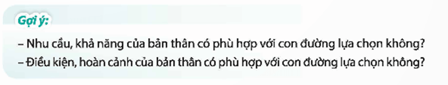 1. Thảo luận nội dung cần tham vấn người thân, thầy cô về con đường tiếp theo sau khi tốt nghiệp trung học cơ sở.