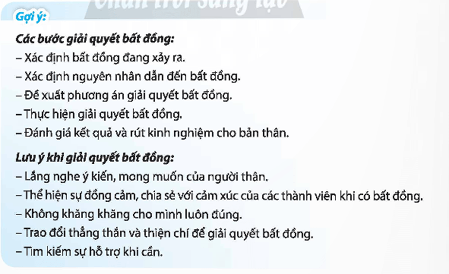 Hoạt động trải nghiệm 9 Nhiệm vụ 3: Thực hành giải quyết bất đồng có thể xảy ra trong quan hệ gia đình