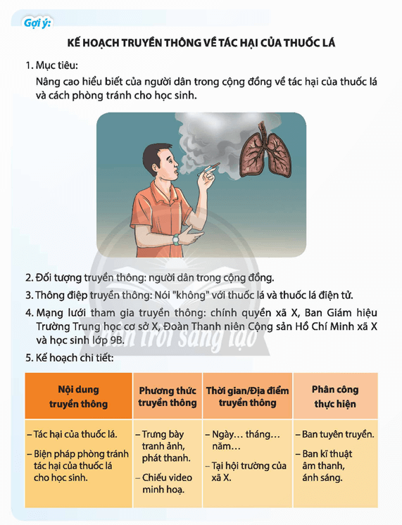 Hoạt động trải nghiệm 9 Nhiệm vụ 3: Xây dựng và thực hiện kế hoạch truyền thông trong cộng đồng về những vấn đề học đường