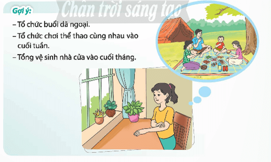 - Chuyến dã ngoại cuối tuần: Em tổ chức một chuyến dã ngoại tới công viên gần nhà, cả gia đình cùng nhau chuẩn bị đồ ăn, tổ chức trò chơi và tham gia các hoạt động ngoài trời.