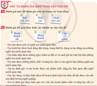 * Đánh giá cuối chủ đề (trang 74 Hoạt động trải nghiệm 9)