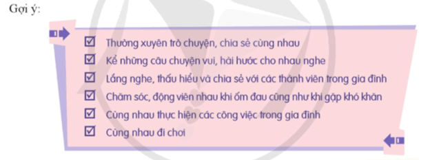 Hoạt động 1 trang 51 Hoạt động trải nghiệm 9: Tạo bầu không khí vui vẻ, yêu thương trong gia đình, cùng các thành viên xây dựng gia đình hạnh phúc