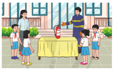 - HS nghe các bước hướng dẫn cách sử dụng bình cứu hỏa.