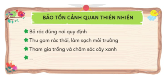 - Thảo luận về những việc làm góp phần bảo tồn cảnh quan thiên nhiên.
