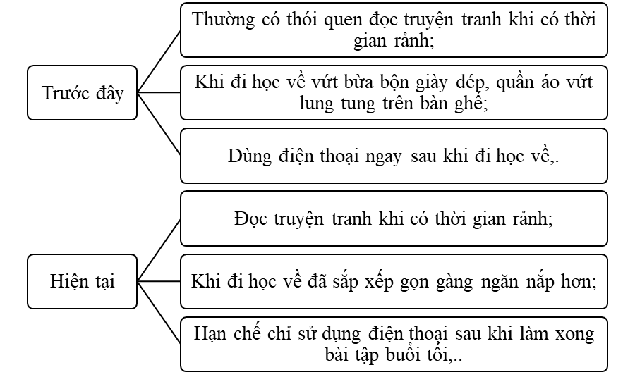 1. Lập sơ đồ thể hiện sự thay đổi trong thói quen và sở thích của bản thân