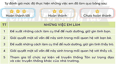 Trả lời: Học sinh tự đánh giá dựa trên những việc mình đã làm