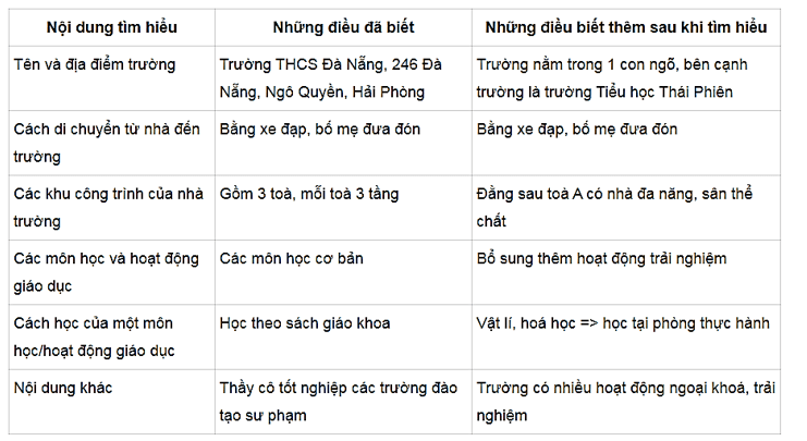 1. Thảo luận và xây dựng nội dung tìm hiểu về môi trường học tập mới của em theo gợi ý: