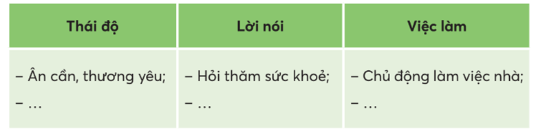 - Quan tâm, hỏi han, chăm sóc các thành viên trong gia đình