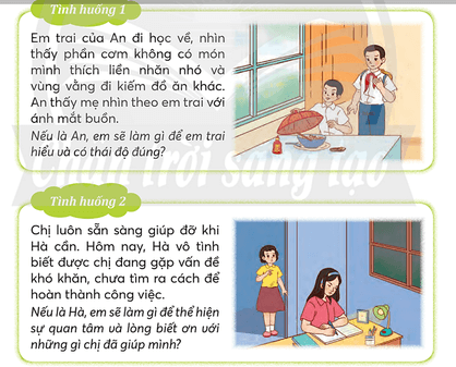 1. Thảo luận cách thể hiện lòng biết ơn bằng thái độ, lời nói, việc làm trong các tình huống sau