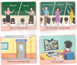 + Trường học: Em sẽ đến lớp học với giáo viên và bạn bè và học theo lộ trình của chương trình giáo dục.