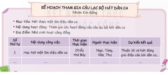 - HS kẻ bảng dựa theo gợi ý và hoàn thiện bảng kế hoạch.