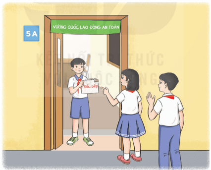 - Trên cửa lớp được gắn tấm biển “Vương quốc Lao động an toàn”
