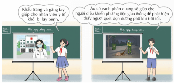 - Mời các bạn nhóm khác đến tham quan góc trưng bày của nhóm mình, giới thiệu công dụng và cách sử dụng các thiết bị bảo hộ.
