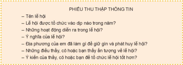 Gợi ý: Phiếu thu thập thông tin về lễ hội truyền thống