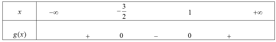 \(g(x)>0\,\,\forall x\in \left( -\infty ;-\frac{3}{2} \right)\cup \left( \frac{3}{2};+\infty \right)\) và