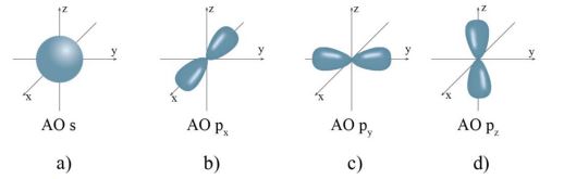 Orbital nguyên tử có một số hình dạng khác nhau như AO hình cầu, còn gọi là AOs, AO hình số tám nổi, còn gọi là AO p.