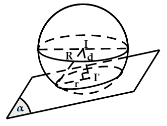 \({\text{ }}R' = \sqrt {{R^2} - {{\left( {II'} \right)}^2}} = \sqrt {{R^2} - {{\left[ {d\left( {I;\left( \alpha \right)} \right)} \right]}^2}} {\text{ }}\)