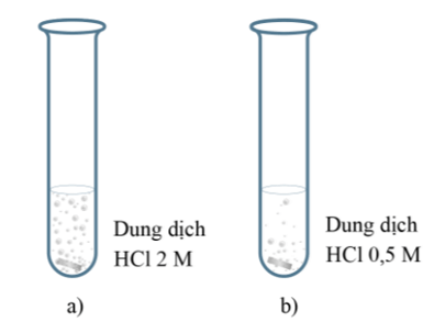 Thí nghiệm: Cho hai mảnh Mg có cùng khối lượng vào hai ống nghiệm chứa cùng thể tích dung dịch HCl dư, nồng độ dung dịch HCl ở mỗi ống nghiệm lần lượt là 2M (thí nghiệm (a)) và 0,5M (thí nghiệm (b)):