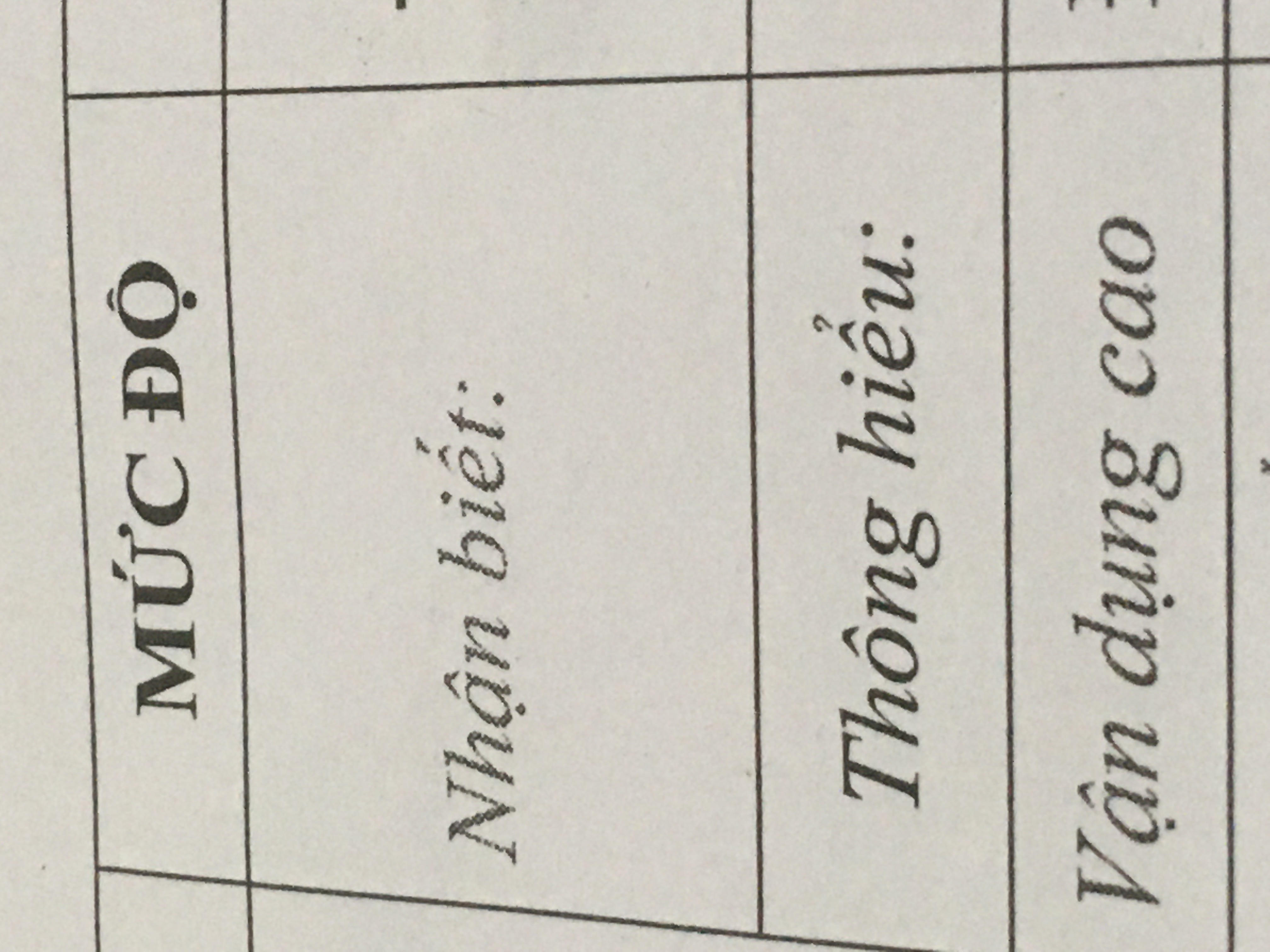- Các hoạt động tương ứng với cấp độ nhận biết là: nhận dạng, đối chiếu, chỉ ra,... Các động từ tương ứng với cấp độ nhận biết có thể là: xác định, đặt tên, liệt kê, đối chiếu hoặc gọi tên, giới thiệu, chỉ ra,...